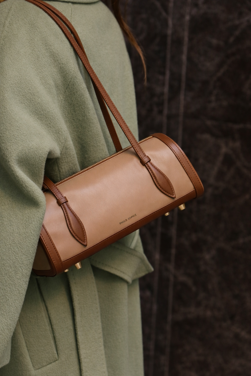 Inspired by the geometry of a classic mailbox, Philo Sophie’s debut design reimagines a familiar household object as a sculptural silhouette. The Ox colorway features two-toned nappa leather in dark and light brown hues, opening to a forest green suede interior.