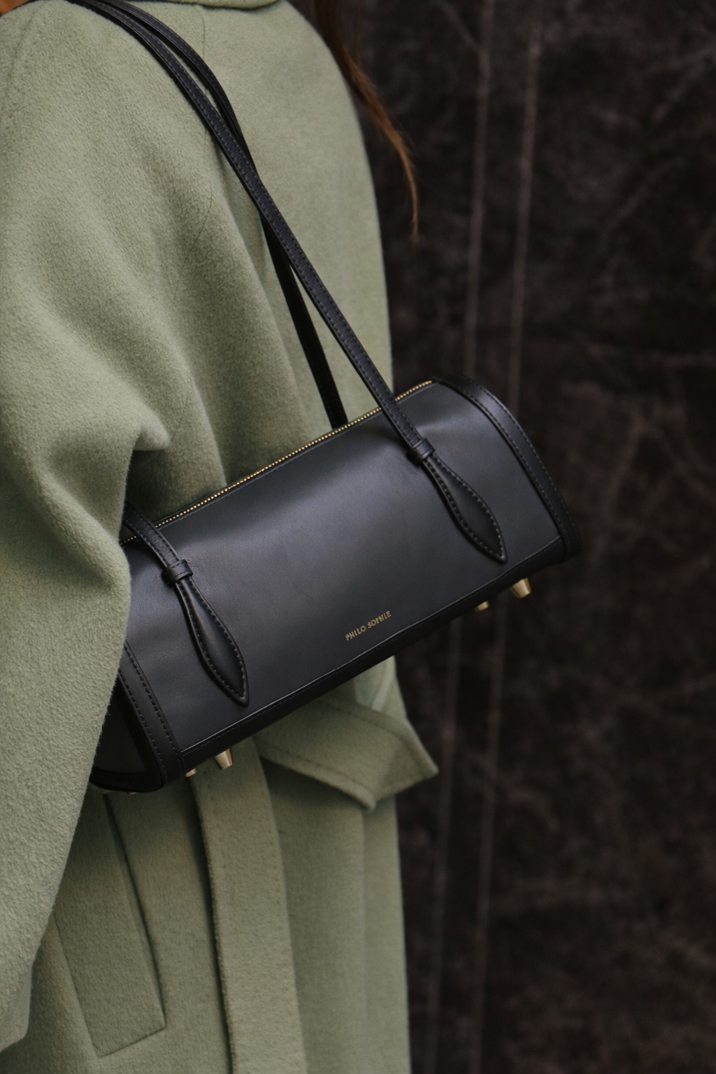 Inspired by the classic mailbox, Philo Sophie’s debut design reimagines a familiar household object as a sculpted silhouette. The Shark colorway features two-toned nappa leather in black and dark grey hues, opening to a mint green suede interior.